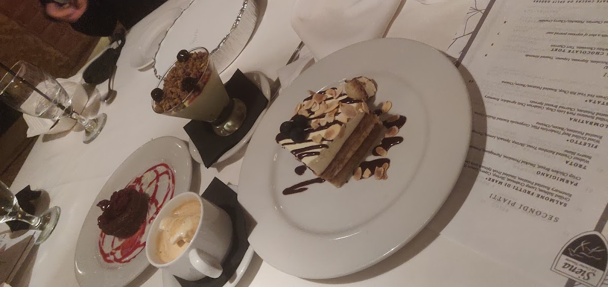 “ We had a pleasure dining at Siena. The food is tasty, the service was good and the atmosphere is very nice. We tried some special menu courses and some pasta. For dessert, we had cannoli. It was very good and not too sweet. ”
